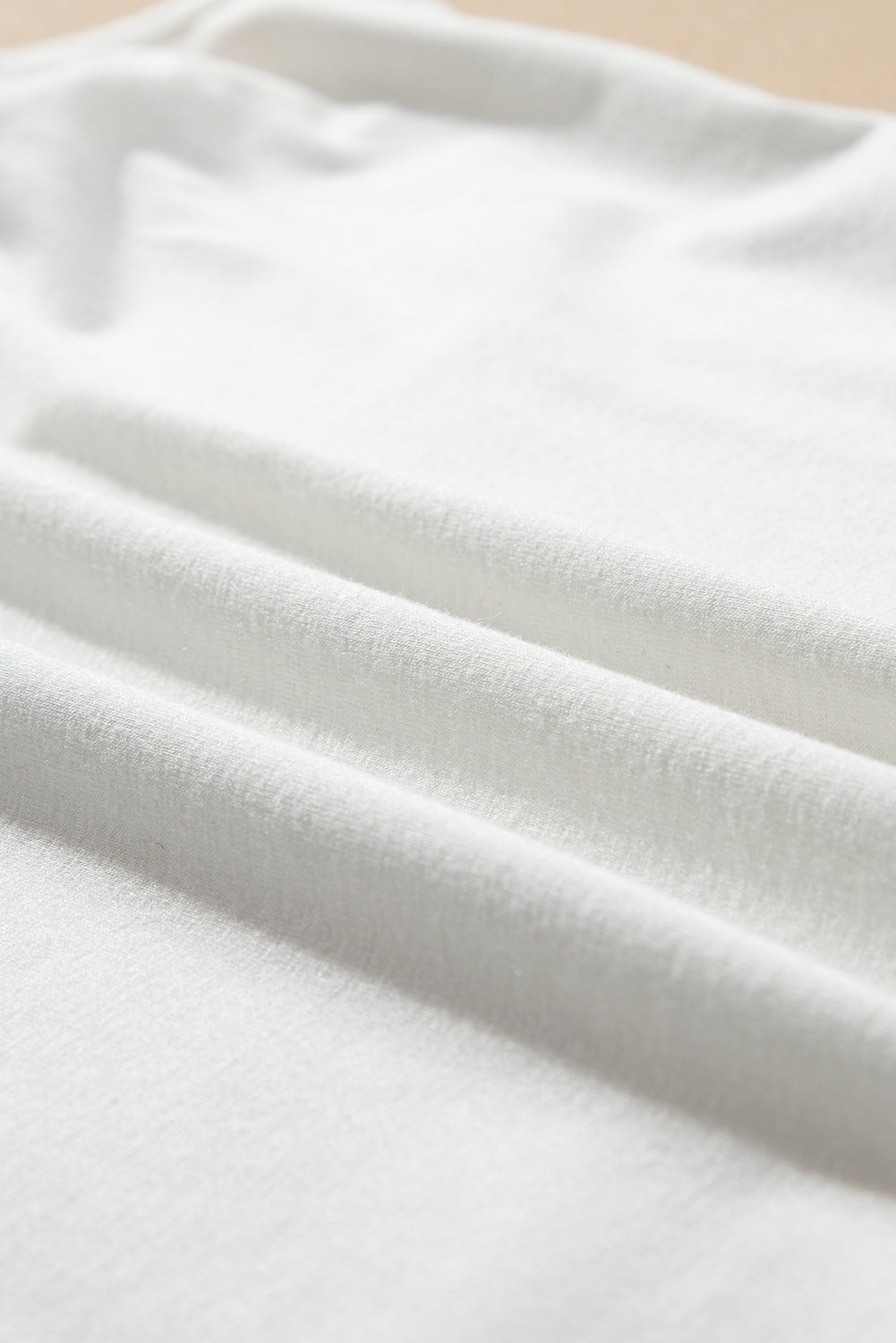 White sheer short sleeve top with a clean, relaxed silhouette and a delicate inner top. Soft, feminine feel.
